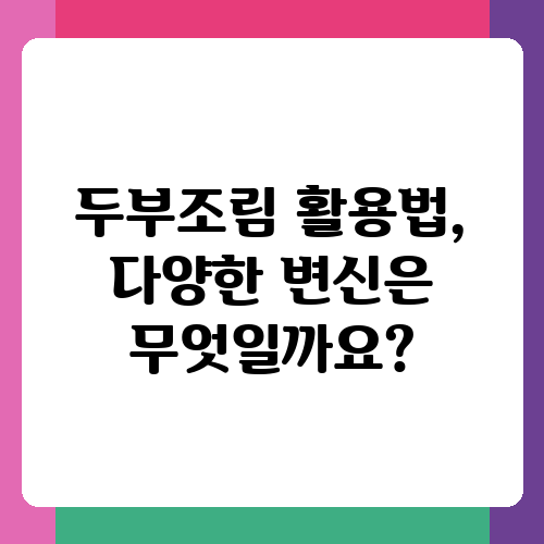 두부조림 활용법, 다양한 변신은 무엇일까요?