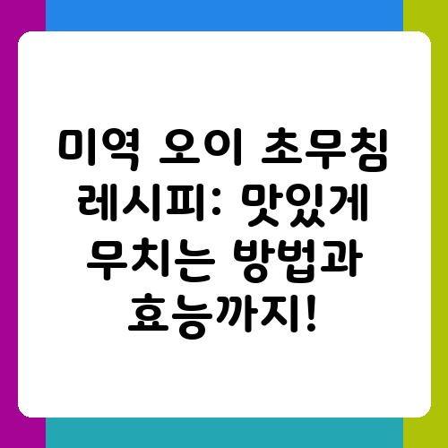 바쁜 일상 속에서도 맛있고 건강한 음식을 먹고 싶은 마음은 누구나 같을 거예요. 특히 여름철에는 입맛 돋우는 시원한 반찬이 그리워지는데요. 오늘은 시원하고 아삭한 식감이 일품인 미역 오이 초무침 레시피를 소개해 드릴게요. 미역과 오이의 조화는 정말 환상적이더라고요. 상큼한 초무침 양념이 더해져 더욱 풍성한 맛을 자랑하는 미역 오이 초무침, 지금 바로 만들어보세요!