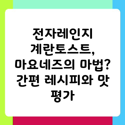 바쁜 아침, 간단하게 든든한 한 끼를 해결하고 싶을 때가 있죠. 저는 그럴 때 전자렌지를 이용한 마요네즈 계란 토스트를 자주 만들어 먹곤 하는데요, 정말 간편하면서도 맛있어서 여러분께도 강력 추천하고 싶어요. 오늘은 제가 직접 만들어 먹는 방법을 자세히 알려드릴게요!