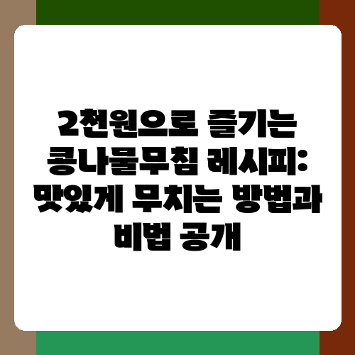 2천원으로 푸짐하고 건강한 콩나물무침을 만들어 즐겨보세요! 오늘 알려드린 팁들을 활용해서 자신만의 특별한 콩나물무침 레시피를 만들어 보시길 바랍니다. 간단하지만 깊은 맛을 내는 콩나물무침, 여러분의 식탁을 풍성하게 만들어 줄 거예요. 궁금한 점이나 다른 레시피가 있다면 언제든지 댓글로 남겨주세요!
