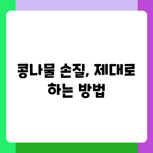 콩나물을 맛있게 무치는 첫 번째 비결은 바로 깨끗한 손질에 있어요. 마트에서 사 온 콩나물은 겉보기에 깨끗해 보여도 흙이나 이물질이 숨어있을 수 있거든요. 저는 콩나물을 흐르는 물에 깨끗하게 씻어준 후, 콩나물 뿌리 부분을 다듬어 주는 편이에요. 뿌리 부분에 붙어있는 잔뿌리를 제거하면 콩나물의 아삭한 식감을 더욱 살릴 수 있답니다. 그리고 콩나물을 찬물에 담가 30분 정도 불려주면 더욱 신선하고 아삭하게 콩나물무침을 만들 수 있어요. 물에 담가두는 시간이 길어지면 콩나물이 물러질 수 있으니 시간을 잘 지켜주세요. 혹시 콩나물이 너무 흐물흐물하다면, 콩나물을 삶는 시간을 조금 줄여보시는 것도 좋은 방법이에요. 어떤 분들은 콩나물을 삶기 전에 굵은 소금으로 한번 살짝 씻어주는 방법도 활용한다고 합니다. 여러 방법들을 시도해보시고 본인에게 맞는 최적의 방법을 찾아보세요!